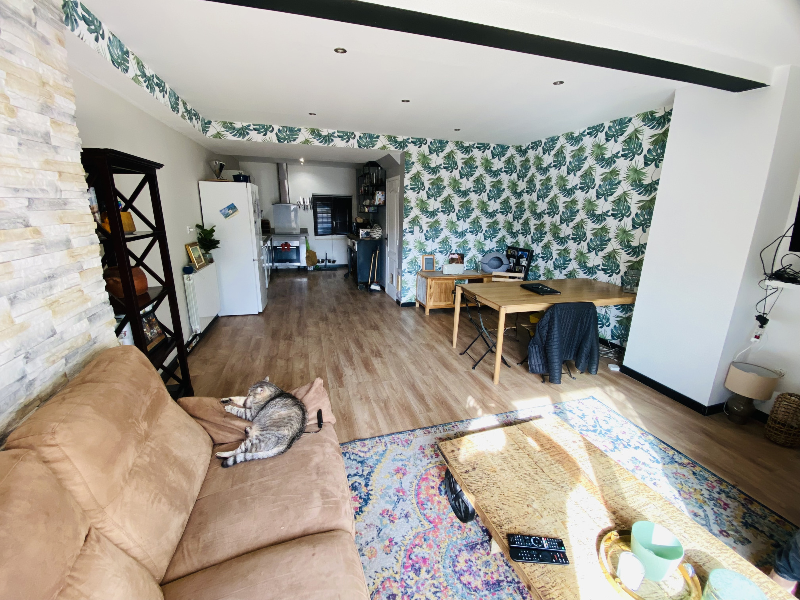 L'ensemble en très bon état;Cuisine équipée , menuiseries en pvc, sols parqueté et carrelé...