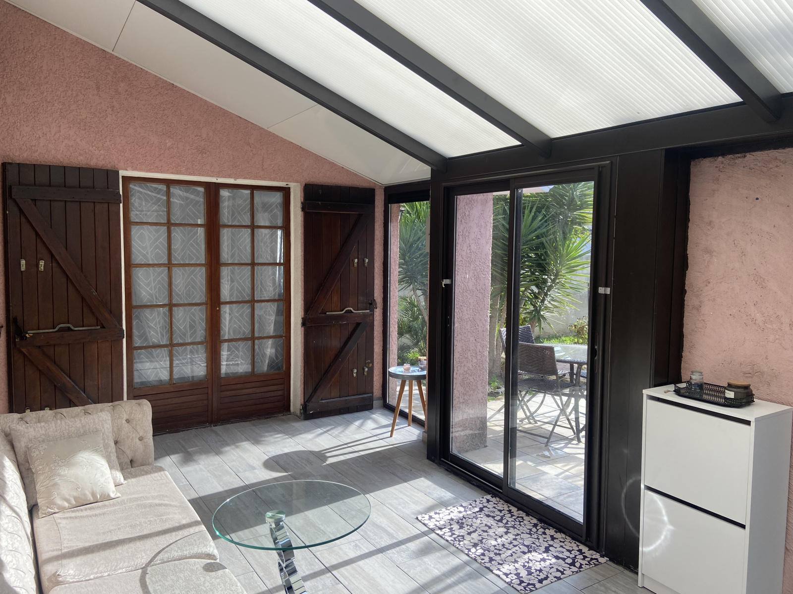 Une parcelle de terrain de 340 m² sur laquelle est édifiée une jolie maison de Type 3 de plain pied, d'une superficie de 65 m² habitable + une veranda de 17 m². Composé d'une cuisine entièrement équipée, un salon, une salle à manger, une véranda, une buanderie, deux chambres, une salle de bain ainsi qu'un wc indépendant. Le tout dans un état exceptionnel, un grand jardin arboré et entretenu avec dépendance. Bien ensoleillé, elle se situe dans une impasse très calme, proche des commerces, des écoles et des accès autoroutiers. Possibilité de stationner deux véhicules. A voir !