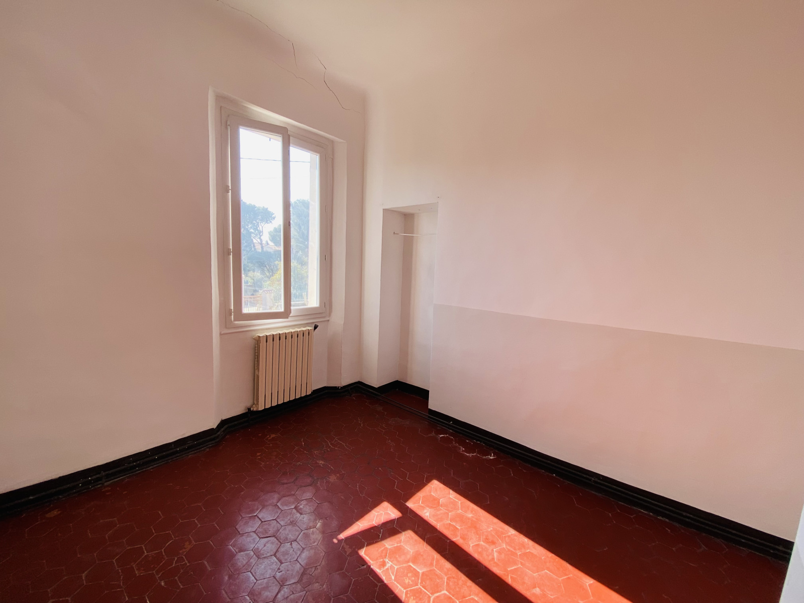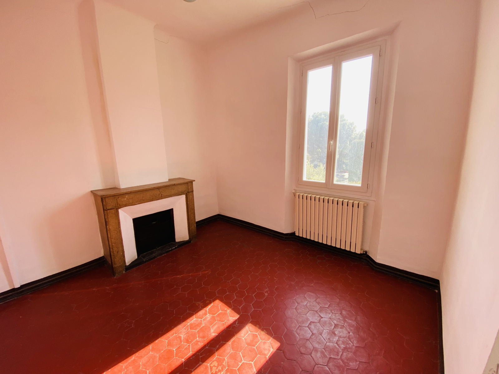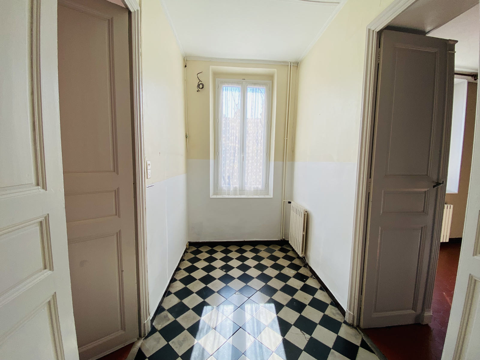 Composée de salon/salle à manger, cuisine, salle d'eau, bureau, et trois chambres, l'ensemble nécessitant des travaux de modernisation.